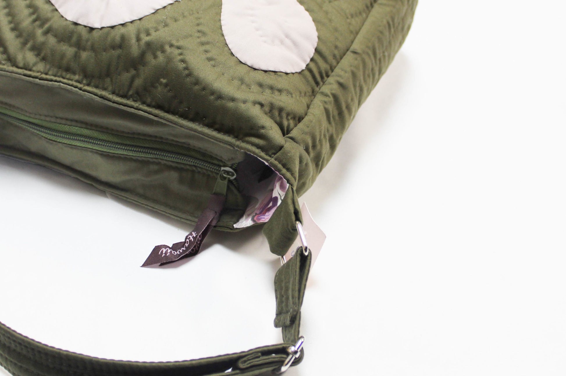 Hand quilted, side tote bag